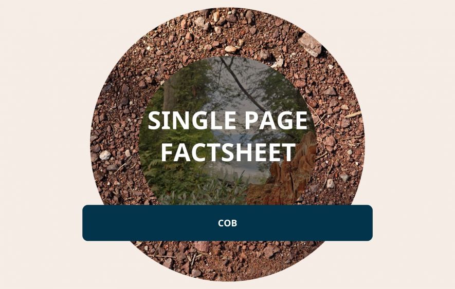 Cob consists of clay, straw, sand, lime and water, which is mixed and becomes stiff when cured. The final product resembles a form of concrete. While the material can be load bearing for single story/low-rise structures, it is typically used as infill for timber post and beam walls.