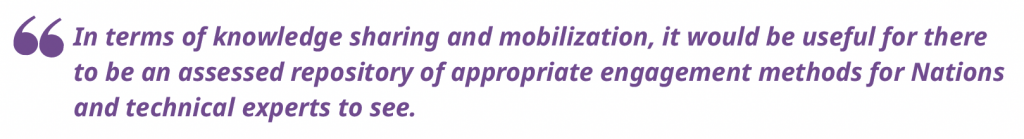 There are several examples of First Nations leading and being engaged in flood mapping in Canada. Unfortunately, these projects are often not being publicly communicated. In terms of knowledge sharing and mobilization, it would be useful for there to be an assessed repository of appropriate engagement methods for Nations and technical experts to see.