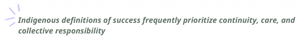 - How can Indigenous definitions of success guide broader measurement, learning, and accountability frameworks?