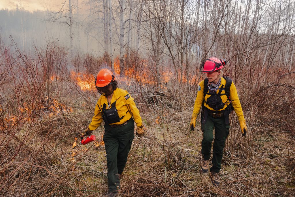Over the past year, the project expanded its cultural burn areas to cover more than 500 hectares of forest and grassland ecosystems, completing burns on over 100 hectares. Higher elevation sites were incorporated to support huckleberry management, and Elders’ knowledge guided fire prescriptions to support the growth and availability of key plants like huckleberries, nodding onion, nettles, riceroot, as well as habitats for moose and grizzly bears. Local school students and residents visited burn sites, harvested culturally important plants, and engaged in workshops and public presentations, including a panel moderated by Elder Darlene Vegh alongside Dr. Daniels and author John Vaillant. Camera trap photos and harvested seeds have been shared with the community to connect residents with the ecological and cultural significance of fire stewardship.
