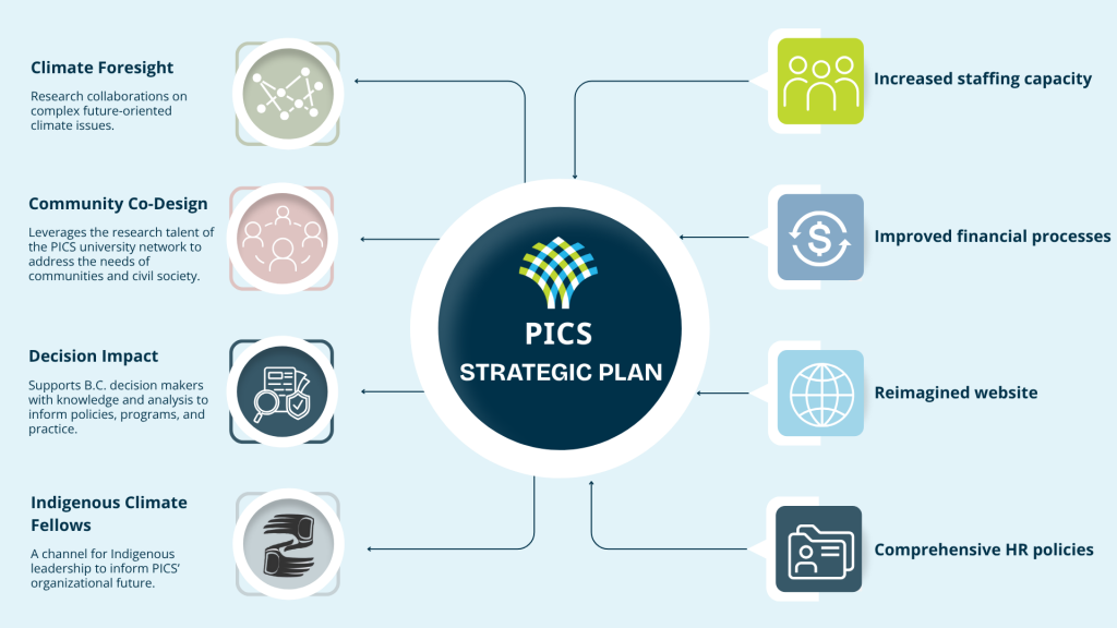 In the Fall of 2024, PICS underwent the periodic external review required for the renewal of mandates for all research centres at the University of Victoria. This examined PICS’ objectives, goals and activities over the previous six years, based on a comprehensive self-assessment produced by the PICS staff. The review panel’s conclusions highlighted that “PICS’ strong contributions to collaborative and interdisciplinary research; student capacity building; and knowledge mobilization are particularly noteworthy”. They also stated that “PICS’ research programs have resulted in a large volume of original, high-quality, co-designed, climate-solutions research” and suggested the new strategic plan helps to integrate and leverage PICS in meaningful ways with our partner ecosystem.