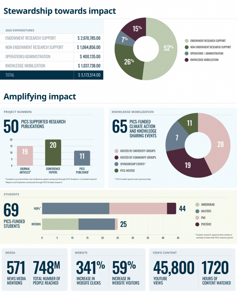 This year also marked a milestone in our reconciliation journey. PICS signed a Relationship Protocol with the First Nations Leadership Council and launched the Indigenous Climate Fellows Program and an award-winning podcast with Siila Watt-Cloutier, reinforcing our commitment to Indigenous leadership in climate action.