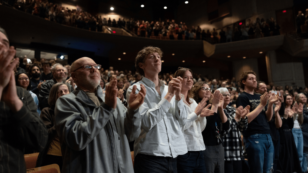 Audience members give their second standing ovation of the evening at David Suzuki: A Conversation of a Lifetime.