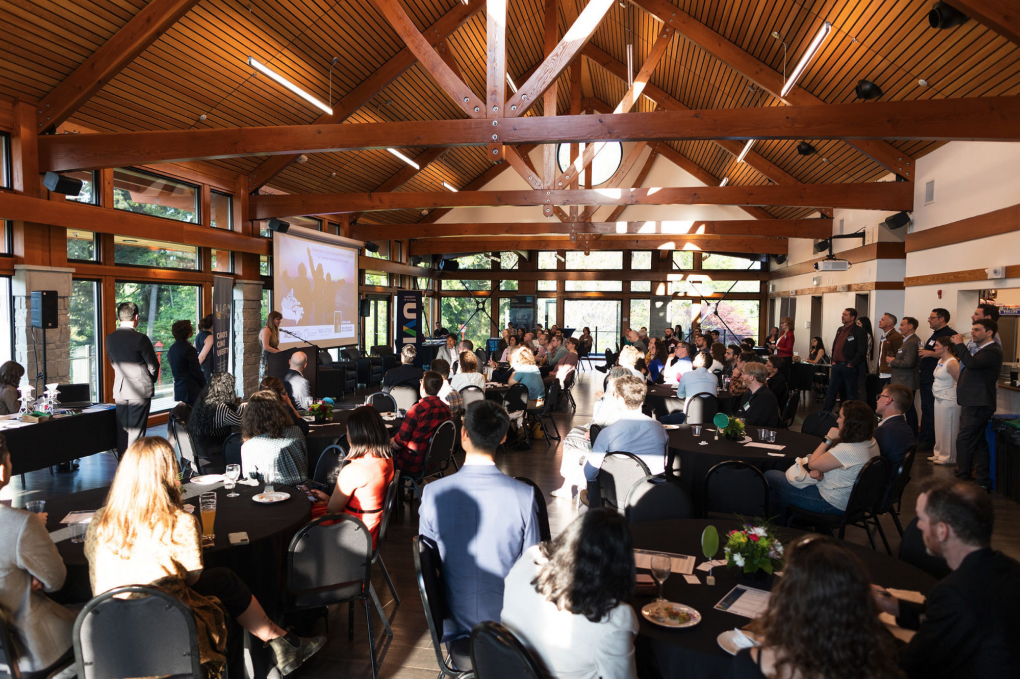 Attendees engaged with a wide range of exhibitors and enjoyed rapid-fire “lightning talks” from students, who distilled complex research into compelling 90-second snapshots. Topics ranged from green shipping fuels to offshore wind energy, highlighting the breadth of innovative climate solutions underway at UVic.
